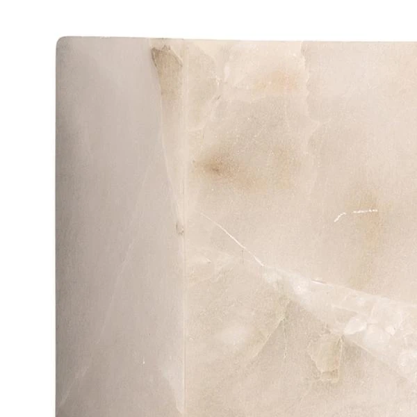 This alabaster sconce has the cool luminosity of an Arctic evening. With its organic cut pieces, this handmade fixture gives the perfect glow to any room.