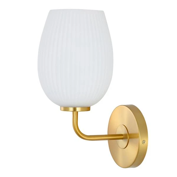 The perfect finishing touch for any interior, this Idina Wall Sconce is a modern must-have. Blyth’s white frosted glass shade casts a warm, gentle glow, beautifully enhanced by the shimmering brass finish of its arm and base.
