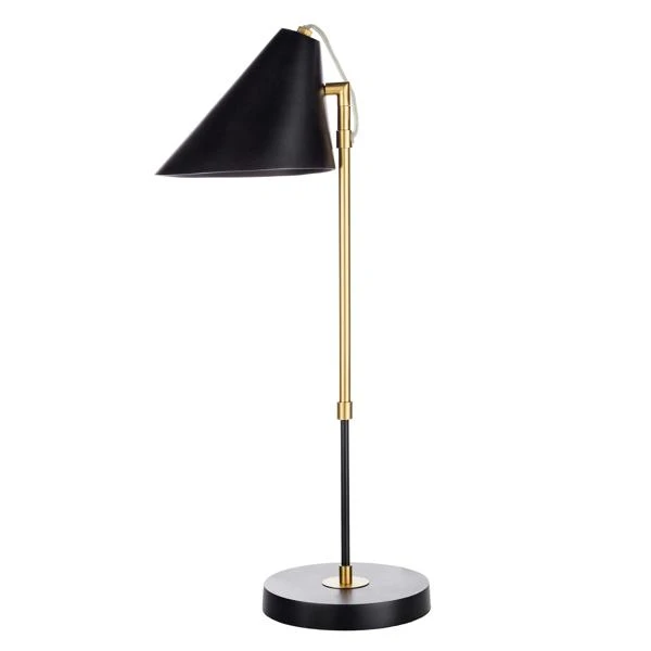 The Bourges table lamp features a satin black metal base and shade with a polished brass finshed neck. It’s a gorgeous display of form-meets-function.