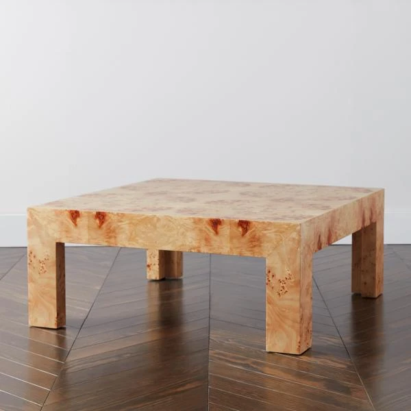 Our Brynn coffee table makes a stunning focal point in the living room with its richly figured burl veneers and modern, clean-lined silhouette. A high-gloss finish completes this luxe design.