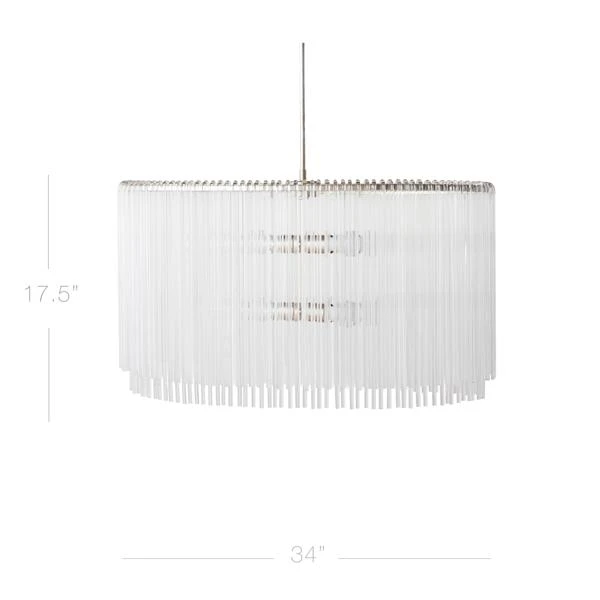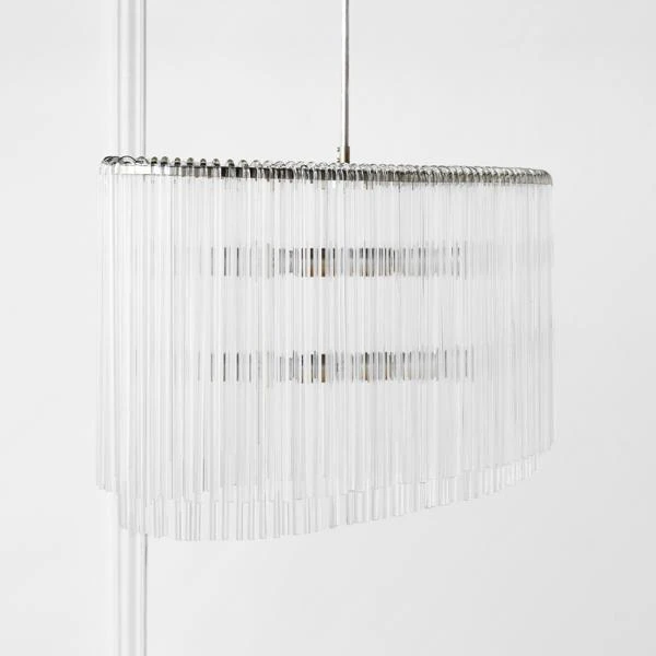 Our exclusive linear glass Cascada Chandelier is the perfect balance of clean design and shimmering charm. More than 100-pieces of hand-bent glass are draped over Cascada’s champagne leaf-finished frame, for a layered effect that will be the talking point of your room.