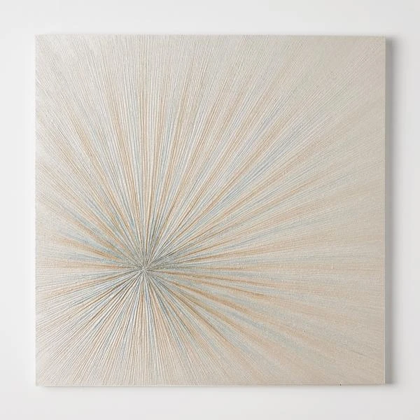 Bold, metallic brushstrokes form an eye-catching sunburst in this original work by artist Beverly Fuller, while glitter embellishments add a hint of sparkle.