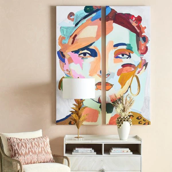 Perfect for adding a lively, modern note to your wall, this abstract portrait from artist Eve Fairwell is printed on canvas with an image brush gel finish for added texture.