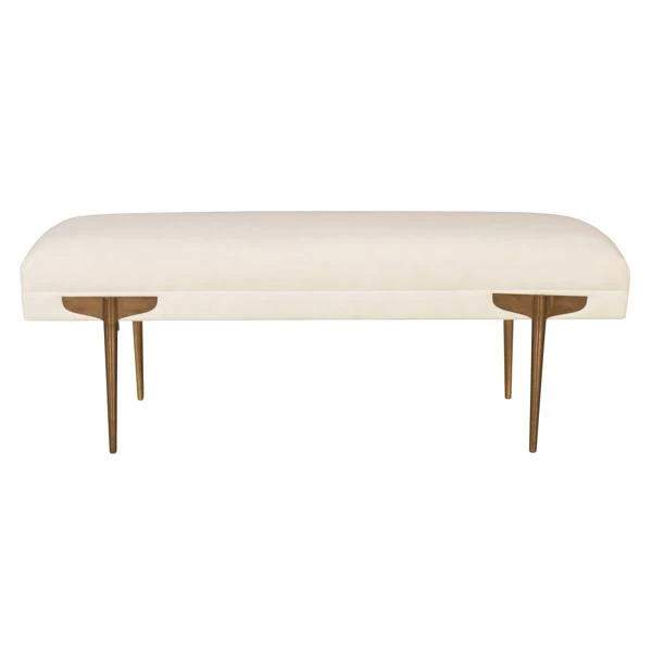 Perched on gold-finished legs and upholstered in white velvet embossed with a wave design, this bench lends a luxe, modern look to the entryway or foot of the bed. A cushy foam-and-fiber fill ensures long-lasting comfort.