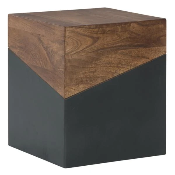 Crafted of wood with a two-tone finish and simple cube silhouette, this distinctive side table is exudes modernity in any room.