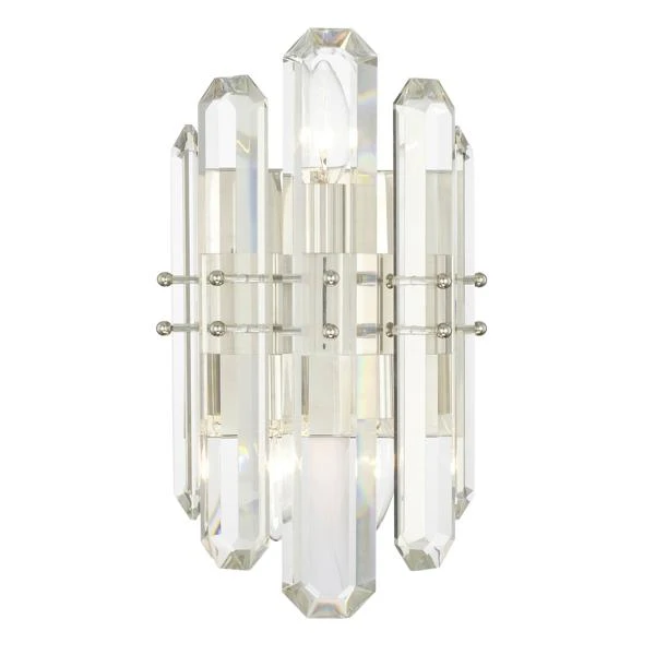 Exudes glamour and luxury when placed as a focal point in the room. The varying sized faceted cut crystal panels are secured to a floating steel frame. The unique crystal prisms reflect beautiful light that creates an endless sparkle that elegantly blend with many décor styles.