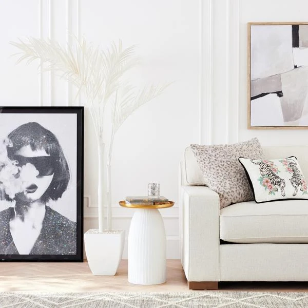 Six feet high faux palm tree makes an over-the-top glam statement in bright white.