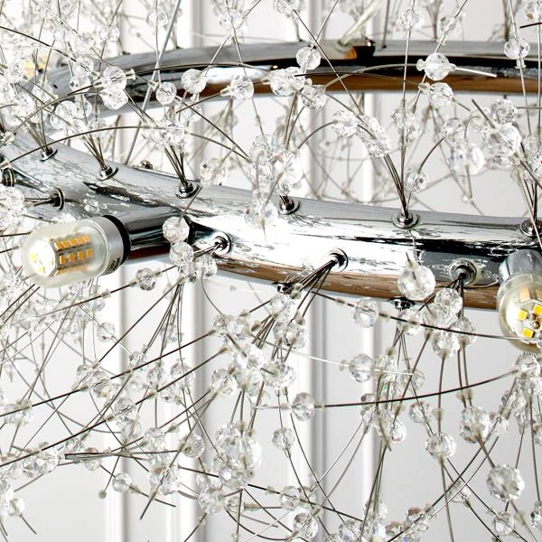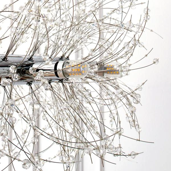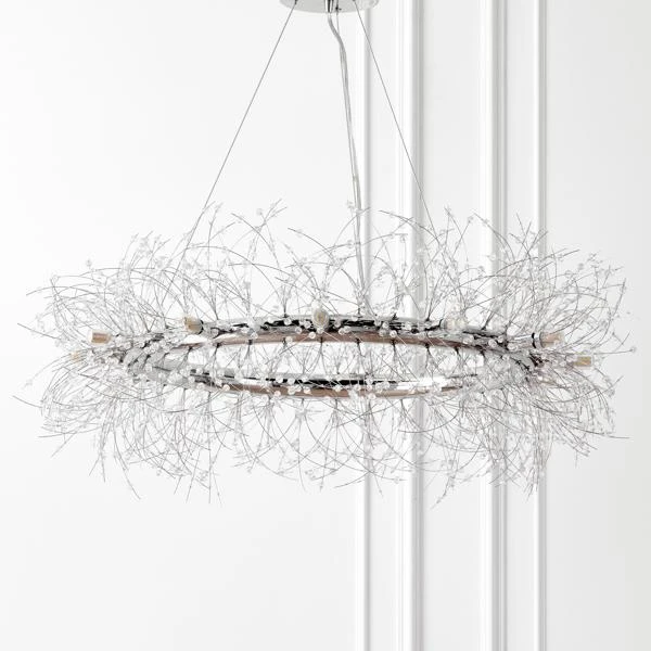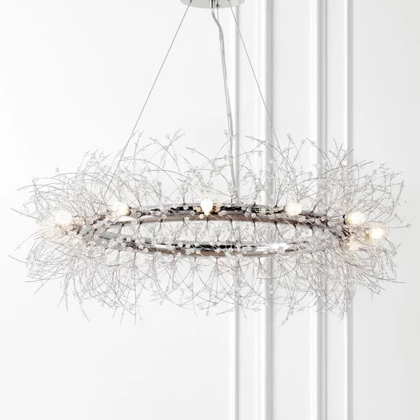 Allow us to be crystal clear. Sophistication meets whimsy in this ethereal secret-garden-inspired crystal chandelier, aptly named Fleur. A wreath of light-reflecting crystal beads appears to float in thin air thanks to artful steel suspension cables.
