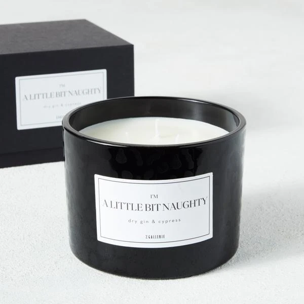 Presented in a black glass vessel with a tonal leopard print and sassy saying, this triple-wick candle features a fresh, woody dry gin and cypress scent and arrives in a handsome box, ready for gifting.