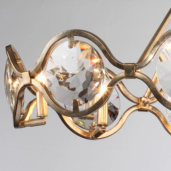 The Kinsley collection combines geometrically arranged optical faceted crystal inset into a shapely frame. Industrial wrought iron fused with oversized faceted cut crystal, contrast for the perfect modern chic design. Whether in a formal or relaxed setting this fixture is sure to be the focal point of any room in the house.