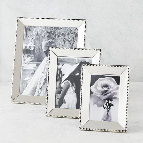Finished in silver with a beaded border design, this picture frame is a stylish option for displaying your favorite photo.