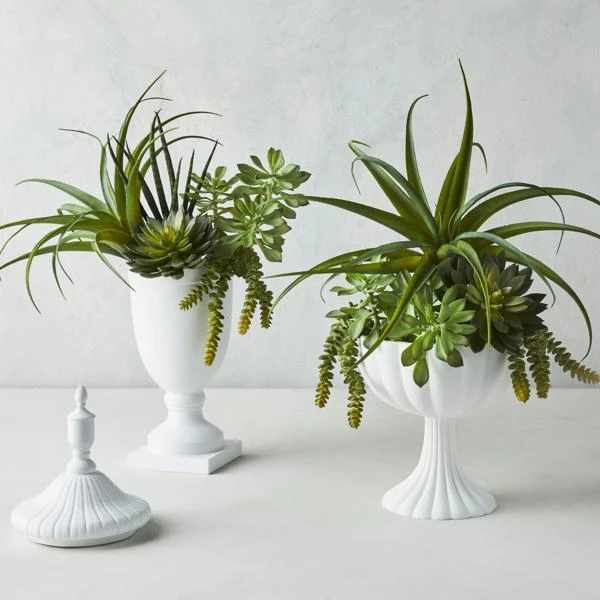 Featuring traditional silhouettes and bright white finish, the pieces in our Lina collection add a stately note to any shelf.