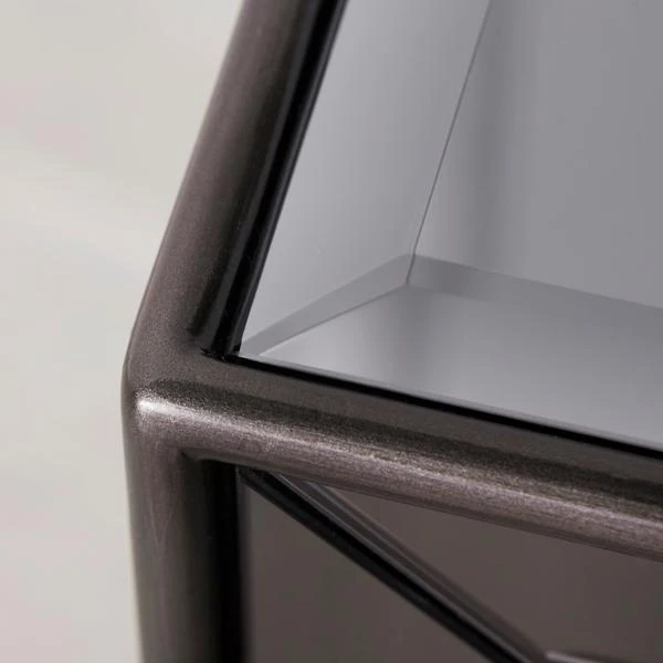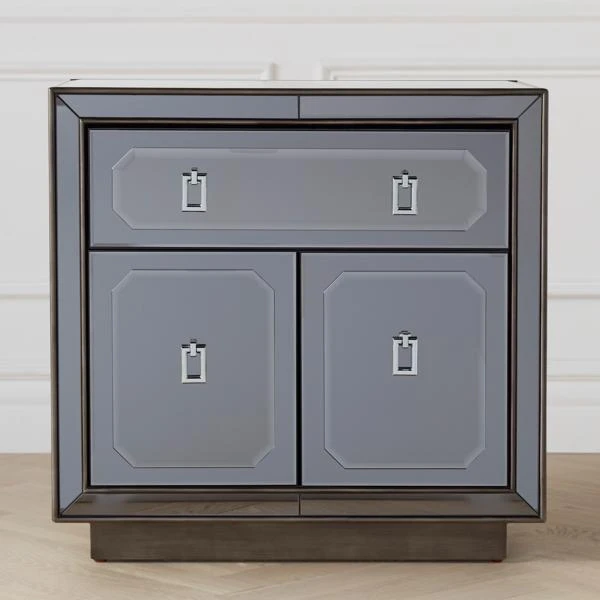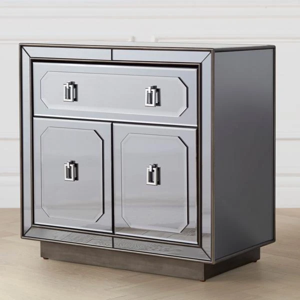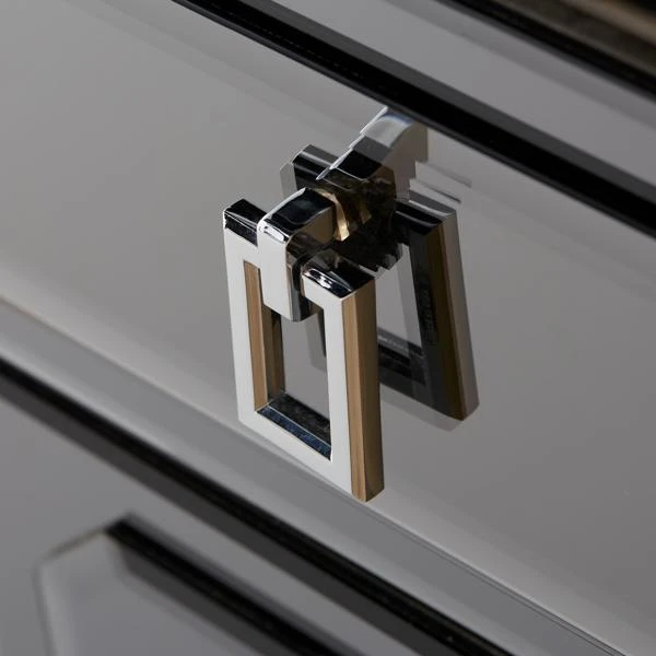 Designed with clean lines, beveled mirror paneling, and a graphite finish, our Maddox Collection delivers sleek style to the bedroom with a modern, masculine edge. Polished nickel ring pulls and black drawer interiors complete the luxe look.