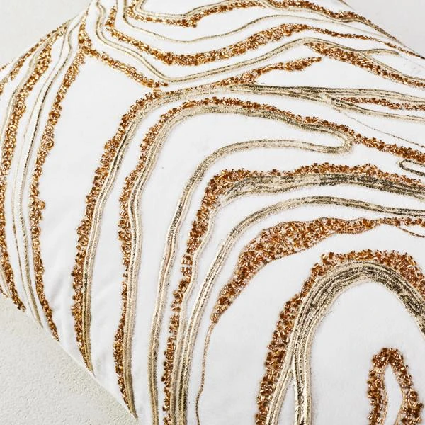 What could be more classic in your decor than marble? Give your space an easy update with this ivory Marble Marvel lumbar pillow with velvet front and bugle bead detailing.