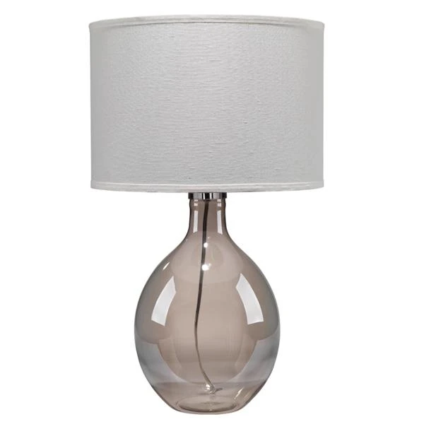 Simple yet elegant, the clean shape of this glass table lamp gleams in cool a shade of grey.