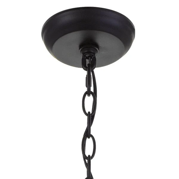 A circular-shaped hand-painted frame gives this fixture a vintage, distressed look, while the beads lend bohemian-style flair.