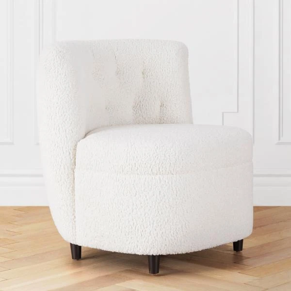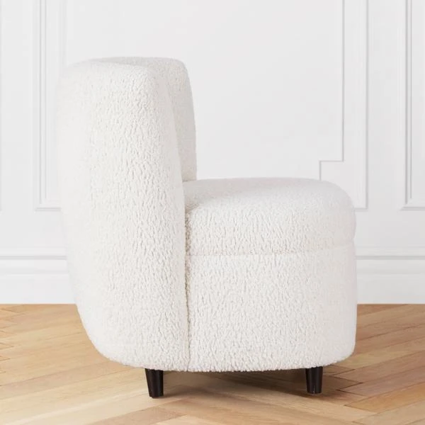 Framed in sturdy hardwood with a rounded silhouette, faux-sheepskin upholstery, and tufted back, this chair adds a cozy, modern note to any space.