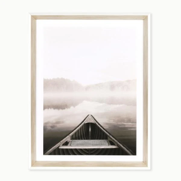 Misty Morning is a framed graphic under glass with a white angled profile frame.