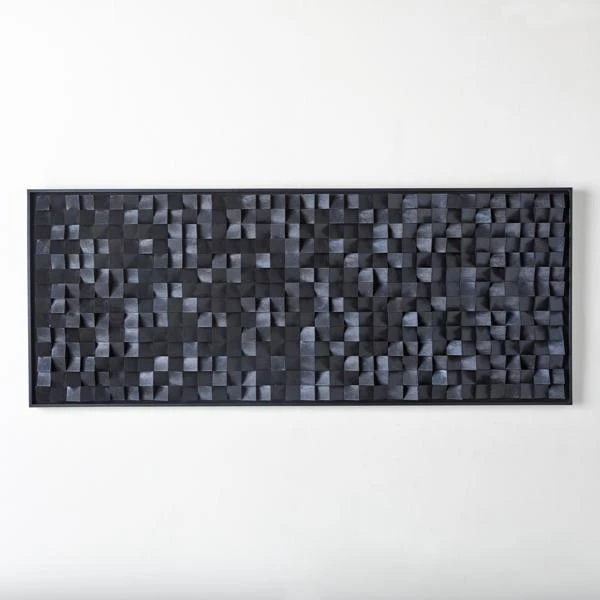 Create a space for wall decor that speaks to you. Nightfall is a conversation starter for sure. This abstract arrangement of cut black blocks is set in a low-profile black frame and will add visual interest to any wall.