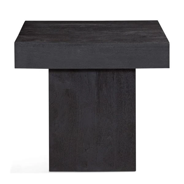 The Novak collection features clean lines in a solid mango construction with a dusty black finish. The sharp lines and matte black finish give the collection a modern flair. Finished in a dusty black allowing some grain to show through.