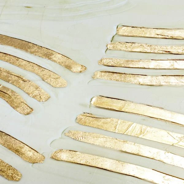 - Hand-applied gold-leaf paint and matte gel texture embellishments