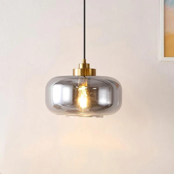 Illuminate your home with the refined elegance and sophistication of our Sirus pendant light. The glass shade combines clean lines and rounded edges to attain a stunningly minimalistic pendant. A smoke grey finish reveals the distinctive bulb to lend subtle vintage notes to our pendant. Completed with gleaming brass hardware, the pendant can be hung alone or arranged in multiples to lend a soft glow to your dining table, kitchen island, bedside table, or armchair.