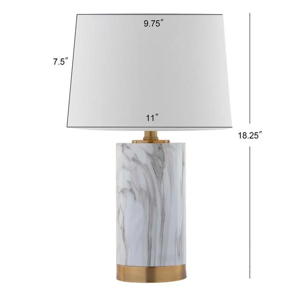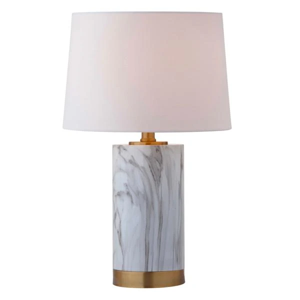 Crafted with sleek white and black marble, its brass neck and base add warmth and dimension. Ideal for the living room or bedroom, designers love to use them in pairs.