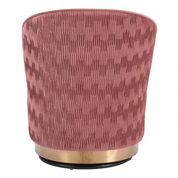 With its sophisticated patterned pleating, the Verity Chair has a maximalist design that fits in any space, deco, modern, or even boho chic. This chair is wrapped in velvet with a gold capped swivel base. It fits in any living room, bedroom, or hotel lobby.