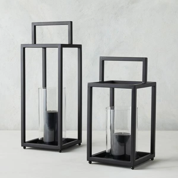 Sleek and modern, this lantern pairs clear glass with clean-lined framework . Finished in black.